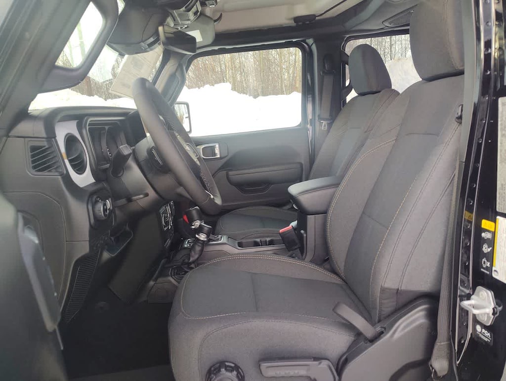 QUICK ORDER PACKAGE 24S SPORT S 3.6L V6 24V VVT UPG I Engine w/ESS, 8-Speed Automatic 850RE Transmission, Advanced Brake Assist, Power Heated Mirrors, Automatic Headlamps, Deep Tint Sunscreen Windows, Premium Wrapped Steering Wheel, Security Alarm, Sun Visors w/Illuminated Vanity Mirrors, Full Speed Forward Collision Warning Plus, BODY COLOR 3-PIECE HARD TOP Freedom Panel Storage Bag, Rear Window Defroster, Rear Sliding Window, CONVENIENCE GROUP Emergency/Assistance Call, Front Door Locks 2-Door Passive Entry, Remote Start System, Body Color Fender Flares (2-Piece), Cluster 7.0 TFT Color Display, Universal Garage Door Opener, Daytime Running Lamp System, Heated Front Seats, Air Conditioning w/Auto Temp Control, Heated Steering Wheel, Corning Gorilla Glass, TRAILER TOW & AUX SWITCH GROUP Trailer Hitch Zoom, Class IV Receiver Hitch, Heavy Duty Engine Cooling, Auxiliary Switches, ALPINE PREMIUM AUDIO SYSTEM, TECHNOLOGY GROUP Media Hub w/2 Charge Only USBs, 400W Inverter, 115V Auxiliary Power Outlet, HD Radio, Connected Travel & Traffic Services, Rear View Auto Dim Mirror, Integrated Voice Command w/Bluetooth®, Uconnect 5 Nav w/12.3 Display, GPS Navigation, MOPAR SPRAY IN BEDLINER, LED HEADLAMP & FOG LAMP GROUP Daytime Running Lamps LED Accents, Front LED Fog Lamps, LED Premium Reflector Headlamps, Molded-In-Color Fender Flares (2 Pcs Fr/1 Pc Rr), 8-SPEED AUTOMATIC 850RE TRANSMISSION (STD), 3.6L V6 24V VVT UPG I ENGINE W/ESS (STD). Jeep Sport S with Black Clearcoat exterior and Black interior features a V6 Cylinder Engine with 285 HP at 6400 RPM*.