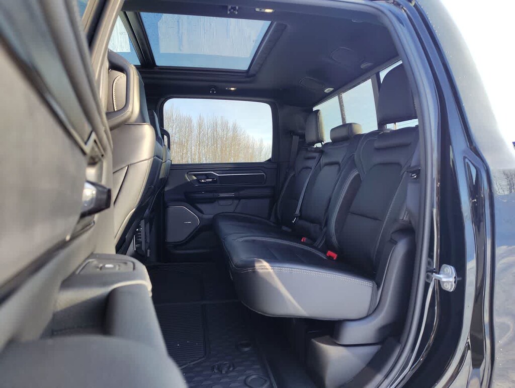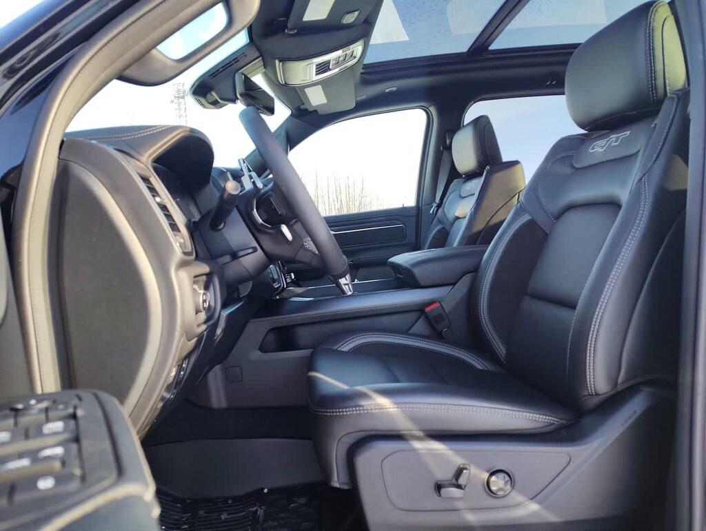 G/T PACKAGE Floor Console, Under Seat Lighting, G/T Decal, Leather Wrapped Shift Knob, Leather-Wrapped Steering Wheel, Steering Wheel Mounted Shift Control, G/T Exhaust, GT Interior Theme, MOPAR Bright Pedal Kit, Performance Pages, REBEL LEVEL 2 EQUIPMENT GROUP Power Adjustable Pedals w/Memory, Front Passenger Interactive Display, Power 2-Way Passenger Lumbar Adjust, Auto Power-Folding Mirrors, 115V Auxiliary Rear Power Outlet, Media Hub w/2 Charge Only USBs, Proximity Approach/Departure Lamps, Power Adjust 8-Way Front Passenger Seat, Security Alarm, Dual Wireless Charging Pad, harman/kardon® 19 Speaker Premium Sound, Rear Window Defroster, Rain Sensitive Windshield Wipers, Auto Dim Exterior Driver Mirror, Accent Color Door Handles, Heated Second Row Seats, Black Painted Exterior Mirrors Caps, Exterior Mirrors Approach Lamps, Smartphone As A Key Capable, 14.4 Touchscreen Display, Accent Color Premium Power Mirrors, Exterior Mirrors w/Supplemental Signals, Exterior Mirrors Courtesy Lamps, Radio: Uconnect 5 Nav w/14.4, DUAL-PANE PANORAMIC SUNROOF Dome Dual LED Reading Lamp, TECHNOLOGY GROUP Head Up Display, LED CHMSL Lamp, 12-Way/1-Way Trailer Connector, MOPAR BLACK TUBULAR SIDE STEPS, BED UTILITY GROUP MOPAR Spray In Bedliner, MOPAR 4 Adjustable Cargo Tie-Down Hooks, Exterior 115V AC Outlet, TRANSMISSION: 8-SPEED AUTOMATIC (8HP75) (STD). Ram Rebel with Diamond Black Crystal Pearlcoat exterior and Black interior features a Straight 6 Cylinder Engine with 420 HP at 5200 RPM*.