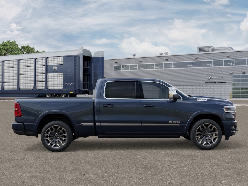 LIMITED LEVEL A EQUIPMENT GROUP Surround View Camera System, LED CHMSL Lamp, Tri-Fold Tonneau Cover, Traffic Sign Recognition, Hands-Free Active Driving Assist System, Head Up Display, Evasive Steer Assist, Drowsy Driver Detection, Intersection Collision Assist System, Smartphone As A Key Capable, 14.4 Touchscreen Display, Radio: Uconnect 5 Nav w/14.4 Display, 240 Amp Alternator, 12-Way/1-Way Trailer Connector, WHEELS: 22 X 9 PREMIUM PAINT/POLISHED Tires: 285/45R22XL BSW All Season, Pirelli Brand Tires, DUAL-PANE PANORAMIC SUNROOF LED Dome/Reading Lamp, Dome Dual LED Reading Lamp, CHROME POWER-FOLD TRAILER TOW MIRRORS Forward & Reverse Utility Lights, Trailer Tow Mirrors, Mirror Clearance/Running Lights, Power Telescoping Mirrors, Auto Dim Exterior Passenger Mirror, Power-Adjustable Convex Aux Mirrors, TRANSMISSION: 8-SPEED AUTOMATIC (8HP75) (STD). Ram Limited with Forged Blue Metallic exterior and Black interior features a Straight 6 Cylinder Engine.