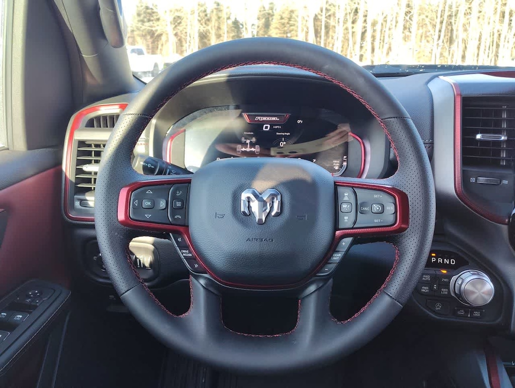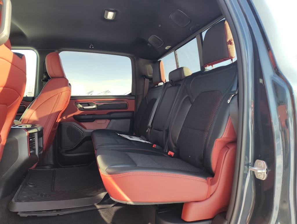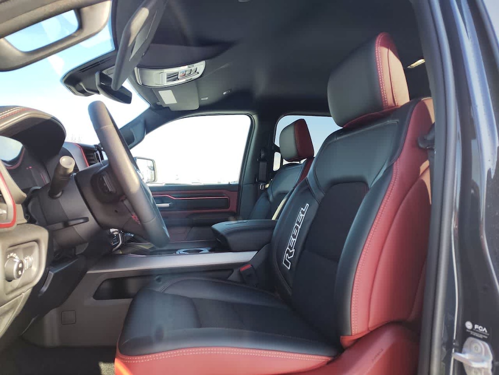 BED UTILITY GROUP MOPAR Spray In Bedliner, MOPAR 4 Adjustable Cargo Tie-Down Hooks, Exterior 115V AC Outlet, REBEL LEVEL 1 EQUIPMENT GROUP Rear Window Defroster, Wireless Charging Pad, Power Adjustable Pedals, Exterior Mirrors w/Supplemental Signals, Exterior Mirrors Courtesy Lamps, Auto Power-Folding Mirrors, Remote Tailgate Release, Auto Dim Exterior Driver Mirror, Black Premium Power Mirrors, TRANSMISSION: 8-SPEED AUTOMATIC (8HP75) (STD). Ram Rebel with Forged Blue Metallic exterior and Red/Black interior features a Straight 6 Cylinder Engine with 420 HP at 5200 RPM*.