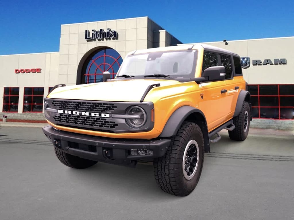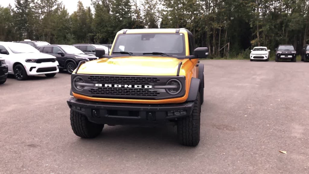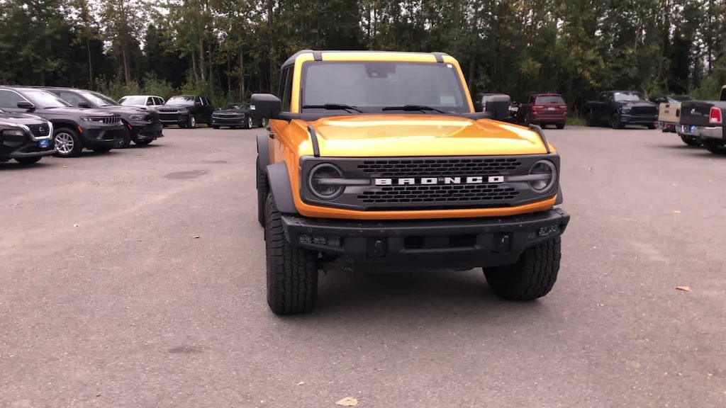EQUIPMENT GROUP 334A LUX PACKAGE Reverse Sensing System, Connected Built-In Navigation, 3 years of service, pinch-to-zoom capability, live traffic, predictive destinations and route guidance, Navigation service requires SYNC4 and FordPass Connect, complimentary connect service and the FordPass app (see FordPass Terms for details), Customer receives a complimentary 3-year trial of navigation services when an eligible vehicle is added to a members FordPass account, Trial period begins w/new vehicle warranty start date, At the end of the complimentary period, access to connected navigation services will be discontinued, Connected service and features depend on compatible AT&T network availability, Evolving technology/cellular networks/vehicle capability may limit functionality and prevent, SASQUATCH PACKAGE Wheels: 17 Black High Gloss-Painted Aluminum, warm alloy beauty ring and beadlock capable wheels, 4.7 Final Drive Ratio, electronic-locking front and rear axle, High Clearance Fender Flares, High Clearance Suspension, Tires: LT315/70R17 Mud-Terrain, Position-Sensitive Bilstein Shock Absorbers, BLACK ONYX, LEATHER-TRIMMED/VINYL BUCKET SEATS 10-way power driver seat, 8-way front passenger seat, second row armrest w/2 beverage holders and front driver/passenger seat back MOLLE strap system, Carpet flooring replaces the standard rubberized flooring, ENGINE: 2.7L ECOBOOST V6 Electronic Stability Control, electric brake boost, GVWR: 6,180 lbs, 4-Wheel Disc Brakes w/Anti-Lock Brake System, TRANSMISSION: 10-SPEED AUTOMATIC 4.46 Axle Ratio, MOLDED-IN-COLOR HARD TOP Rear-Window Defroster & Washer, Front Row Top Panels Storage Bag, For on-vehicle storage, TOWING CAPABILITY. Ford Badlands with Cyber Orange Metallic Tri-Coat exterior and Black Onyx interior features a V6 Cylinder Engine with 315 HP at 5500 RPM*.