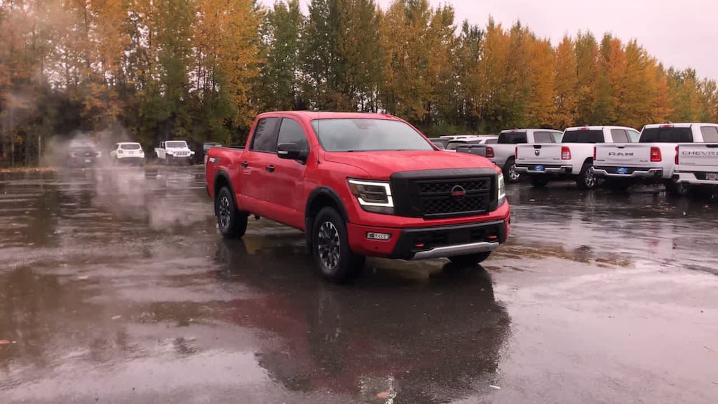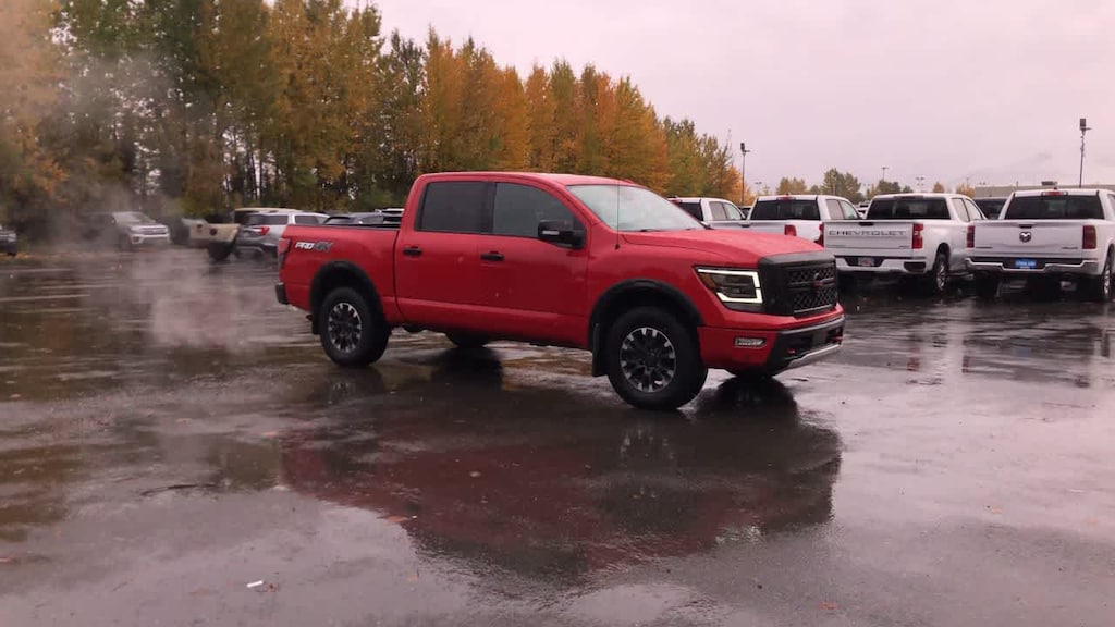 PRO-4X CONVENIENCE PACKAGE 4-Way Power Assist Seat, Memory Driver Seat w/Auto Entry/Exit Feature, Heated Driver & Passenger Seat, Heated Rear Seats, Remote Engine Start on Key Fob, Side Turn Signal Lamps on Mirror Housing, Heated Power Tilt/Telescopic Steering Wheel, memory, Power Folding Auto Dimming Outside Mirrors, memory and reverse auto tilt, Puddle Lamps, Intelligent Around View Monitor (I-AVM), Moving Object Detection (MOD), PRO-4X UTILITY PACKAGE LED Tailgate Area Illumination, Trailer Brake Controller, LED Under Rail Bed Lighting, Fender Premium Audio System w/12 Speakers, amplifier, underseat subwoofer, center channel speaker and front and rear tweeters, Front & Rear Parking Sensors, Proximity Activation, LED signature headlamps and cargo lamp, 110V Outlet in Bed, Utilitrack System w/4 Tie-Down Cleats, Trailer Light Check Function On Key Fob, Power Sliding Rear Window w/Defogger, Rear Utility Bed Step, Electronic Locking Tailgate, OFF ROAD PROTECTION PACKAGE crew cab interior door scuff protection, off-road adventure kit and adventure medic kit, All Season Floor Mats. Nissan PRO-4X with RED ALERT exterior and Black interior features a 8 Cylinder Engine with 400 HP at 5800 RPM*.