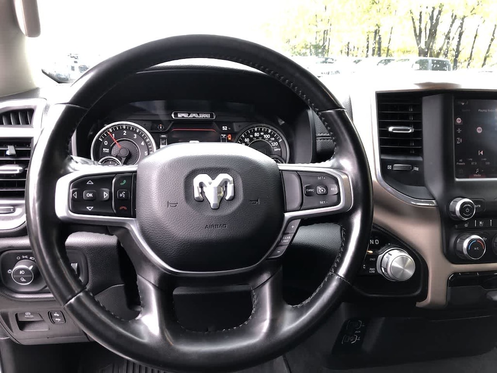 ENGINE: 5.7L V8 HEMI MDS VVT Active Noise Control System, Heavy Duty Engine Cooling, Passive Tuned Mass Damper, GVWR: 7,100 lbs, Dual Rear Exhaust w/Bright Tips, HEMI Badge, 220 Amp Alternator, TRANSMISSION: 8-SPEED AUTOMATIC (8HP75). Ram Laramie with Bright White Clearcoat exterior and Black interior features a 8 Cylinder Engine with 305 HP at 6400 RPM*.