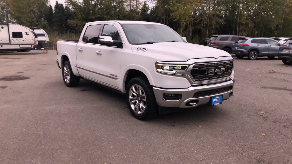 LIMITED LEVEL 1 EQUIPMENT GROUP Adaptive Cruise Control w/Stop & Go, Surround View Camera System, Parallel & Perp Park Assist w/Stop, LED CHMSL Lamp, ParkSense Front/Rear Park Assist w/Stop, Wireless Charging Pad, Pick-Up Box Lighting, Pedestrian Emergency Braking, MOPAR Spray In Bedliner, Power Running Boards, Head Up Display, Tailgate Ajar Warning Lamp, Digital Rearview Mirror, Lane Keep Assist, ELITE PACKAGE Multi-Function Tailgate, Tailgate Ajar Warning Lamp, harman/kardon® 19 Speaker Premium Sound, Rotary Shifter-Jeweled, Suede Headliner, Instrument Cluster Theme 8, MOPAR 4 Adjustable Cargo Tie-Down Hooks, MOPAR Deployable Bed Step Center Mount, MOPAR Bright Pedal Kit, DUAL-PANE PANORAMIC SUNROOF LED Dome/Reading Lamp, Dome Dual LED Reading Lamp, TRANSMISSION: 8-SPEED AUTOMATIC (8HP75) (STD), ENGINE: 5.7L V8 HEMI MDS VVT ETORQUE Delete Alternator, 18 Aluminum Spare Wheel (STD). Ram Limited with Bright White Clearcoat exterior and Indigo/Sea Salt interior features a 8 Cylinder Engine with 395 HP at 5600 RPM*.