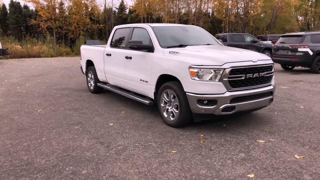BIG HORN LEVEL 1 EQUIPMENT GROUP Google Android Auto®, Bluetooth® Handsfree Phone & Audio, USB Host Flip, Rear Window Defroster, Integrated Center Stack Radio, Rear View Auto Dim Mirror, For More Info, Call 800-643-2112, Rear Power Sliding Window, Rear Dome w/On/Off Switch Lamp, Front Fog Lamps, Connectivity - US/Canada, Glove Box Lamp, 4G LTE Wi-Fi Hot Spot, Auto Dim Exterior Driver Mirror, Heated Front Seats, Radio: Uconnect 5 W w/8.4 Display, Heated Steering Wheel, 8.4 Touchscreen Display, Class IV Receiver Hitch, Black Premium Power Mirrors, Apple CarPlay®, Big Horn IP Badge, SiriusXM Satellite Radio, Exterior Mirrors w/Supplemental Signals, Exterior Mirrors Courtesy Lamps, Passenger Sun Visor w/Illuminated Mirror, Electric Shift On Demand Transfer Case, Power-Folding Mirrors, 2nd Row, WHEELS: 20 X 9 ALUMINUM CHROME CLAD, WHEEL TO WHEEL SIDE STEPS, REMOTE START SYSTEM, TRANSMISSION: 8-SPEED AUTOMATIC (8HP75) (STD), ENGINE: 5.7L V8 HEMI MDS VVT ETORQUE (STD). Ram Big Horn with Bright White Clearcoat exterior and Diesel Gray/Black interior features a 8 Cylinder Engine with 395 HP at 5600 RPM*.