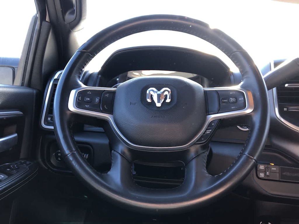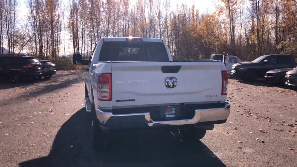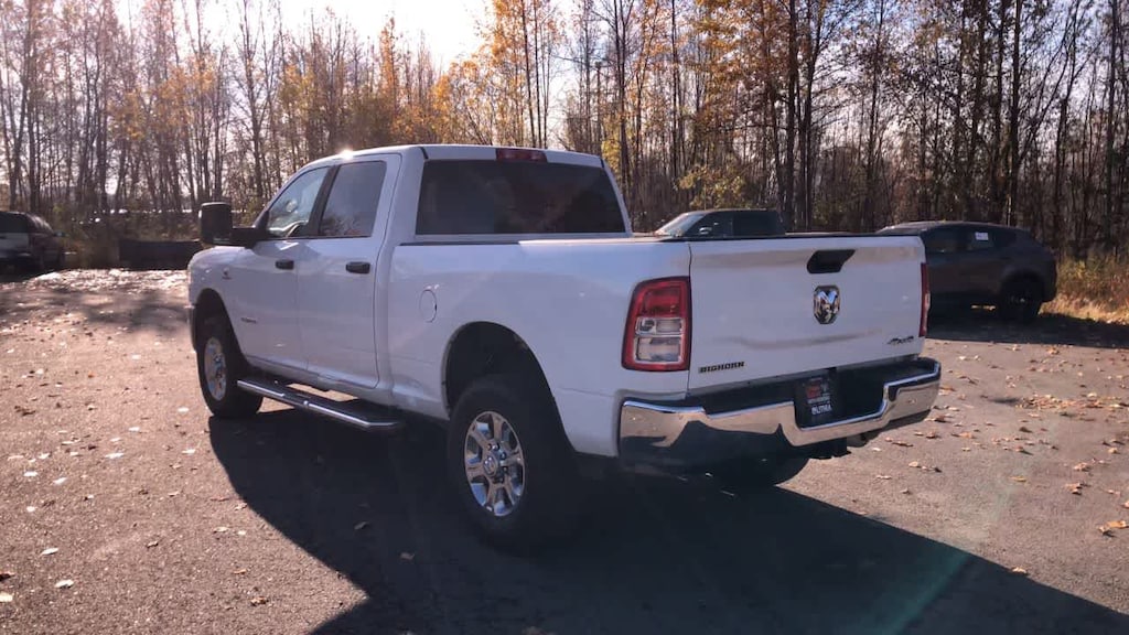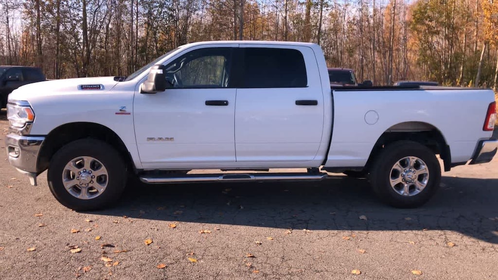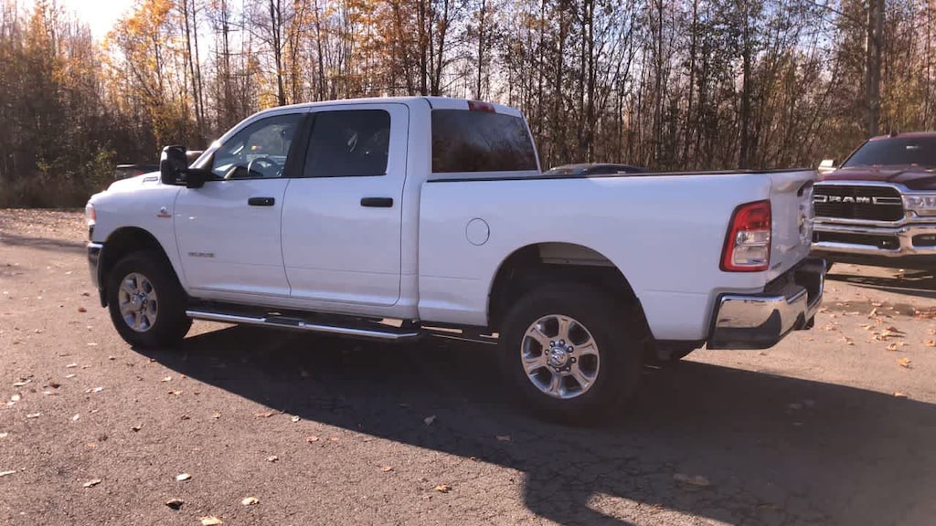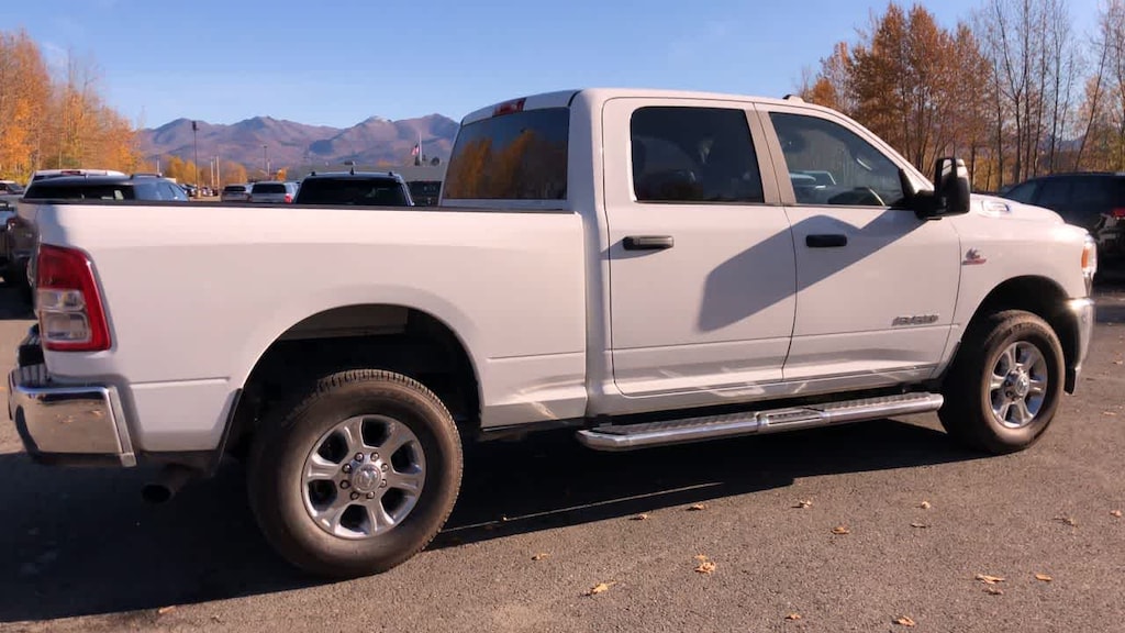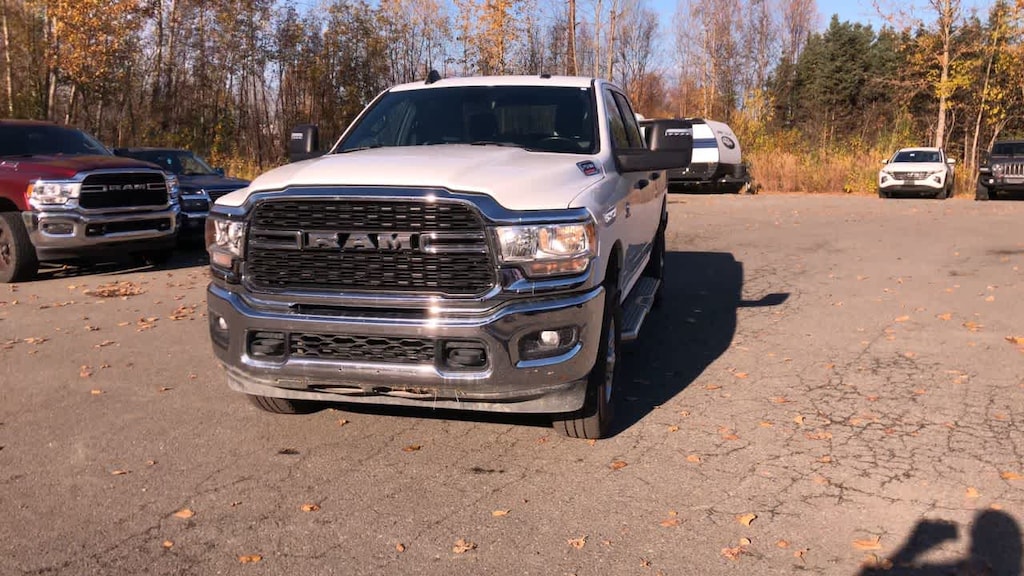 ENGINE: 6.7L I6 CUMMINS TURBO DIESEL Selective Catalytic Reduction (Urea), Dual 730 Amp Maintenance Free Batteries, Cummins Turbo Diesel Badge, Heavy Duty Engine Cooling, Tow Hooks, Diesel Exhaust Brake, Supplemental Heater, Front Bumper Sight Shields, Capless Fuel Fill w/o Discriminator, DIESEL GRAY/BLACK, PREMIUM CLOTH 40/20/40 BENCH SEAT Storage Tray, Rear 60/40 Folding Seat, Front Armrest w/Cupholders, Remote USB Port - Charge Only, Front Center Seat Cushion Storage, Manual Adjust 4-Way Front Passenger Seat, Power Adjust 8-Way Driver Seat, Front Seat Back Map Pockets, Power 2-Way Driver Lumbar Adjust, CHROME FLAT CAB-LENGTH SIDE STEPS, LEVEL 1 EQUIPMENT GROUP Google Android Auto®, For Details, Visit DriveUconnect.com, For More Info, Call 800-643-2112, Leather Wrapped Steering Wheel, Rear Dome w/On/Off Switch Lamp, Front Fog Lamps, Glove Box Lamp, Auto Power-Folding Mirrors, Footwell Courtesy Lamp, 4G LTE Wi-Fi Hot Spot, Mirror Running Lights, Radio: Uconnect 5 W w/8.4 Display, 8.4 Touchscreen Display, Foam Bottle Insert (Door Trim Panel), Wheels: 18 x 8.0 Polished Aluminum, Apple CarPlay®, Big Horn IP Badge, Power Adjustable Convex Aux Mirrors, Forward & Reverse Utility Lights, Locking Lower Glove Box, Selectable Tire Fill Alert, SiriusXM Satellite Radio, Power Heated Fold Telescope Mirrors, Exterior Mirrors w/Supplemental Signals, Steering Wheel Mounted Audio Controls, Exterior Mirrors Courtesy Lamps, Dual Glove, TRANSMISSION: 6-SPEED AUTOMATIC (68RFE). Ram Big Horn with Bright White Clearcoat exterior and Diesel Gray/Black interior features a Straight 6 Cylinder Engine with 410 HP at 5600 RPM*.