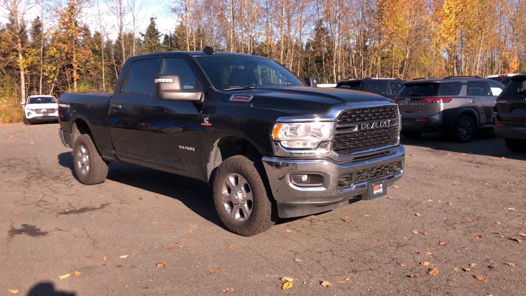 ENGINE: 6.7L I6 CUMMINS TURBO DIESEL Selective Catalytic Reduction (Urea), Dual 730 Amp Maintenance Free Batteries, Cummins Turbo Diesel Badge, Heavy Duty Engine Cooling, Tow Hooks, Diesel Exhaust Brake, Supplemental Heater, Front Bumper Sight Shields, Capless Fuel Fill w/o Discriminator, DIESEL GRAY/BLACK, PREMIUM CLOTH 40/20/40 BENCH SEAT Storage Tray, Rear 60/40 Folding Seat, Front Armrest w/Cupholders, Remote USB Port - Charge Only, Front Center Seat Cushion Storage, Manual Adjust 4-Way Front Passenger Seat, Power Adjust 8-Way Driver Seat, Front Seat Back Map Pockets, Power 2-Way Driver Lumbar Adjust, CHROME FLAT CAB-LENGTH SIDE STEPS, LEVEL 1 EQUIPMENT GROUP Google Android Auto®, For Details, Visit DriveUconnect.com, For More Info, Call 800-643-2112, Leather Wrapped Steering Wheel, Rear Dome w/On/Off Switch Lamp, Front Fog Lamps, Glove Box Lamp, Auto Power-Folding Mirrors, Footwell Courtesy Lamp, 4G LTE Wi-Fi Hot Spot, Mirror Running Lights, Radio: Uconnect 5 W w/8.4 Display, 8.4 Touchscreen Display, Foam Bottle Insert (Door Trim Panel), Wheels: 18 x 8.0 Polished Aluminum, Apple CarPlay®, Big Horn IP Badge, Power Adjustable Convex Aux Mirrors, Forward & Reverse Utility Lights, Locking Lower Glove Box, Selectable Tire Fill Alert, SiriusXM Satellite Radio, Power Heated Fold Telescope Mirrors, Exterior Mirrors w/Supplemental Signals, Steering Wheel Mounted Audio Controls, Exterior Mirrors Courtesy Lamps, Dual Glove, TRANSMISSION: 6-SPEED AUTOMATIC (68RFE). Ram Big Horn with Diamond Black Crystal Pearlcoat exterior and Diesel Gray/Black interior features a Straight 6 Cylinder Engine with 410 HP at 5600 RPM*.