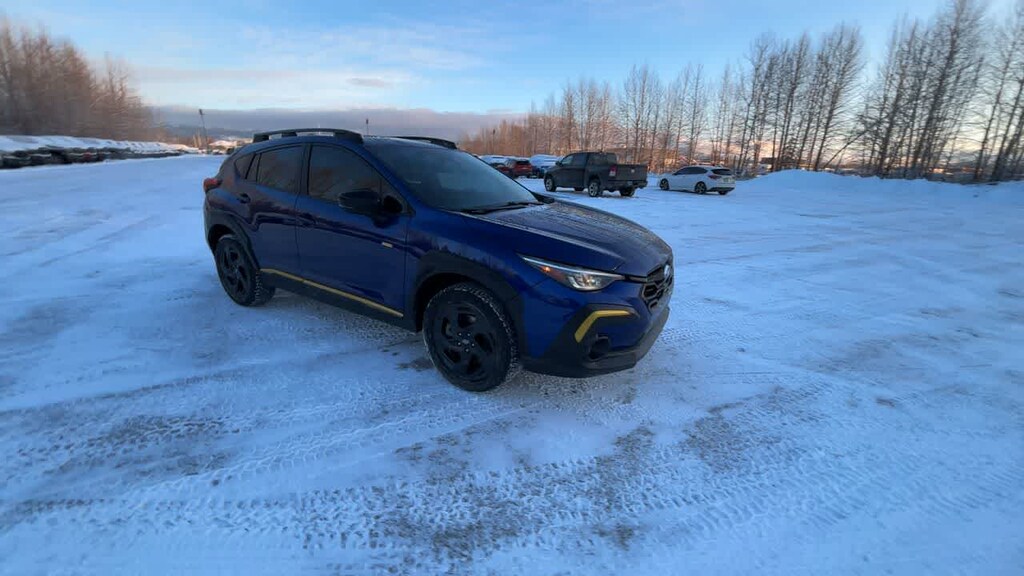 CROSSTREK MIRROR PACKAGE Auto-Dimming Mirror w/Compass & HomeLink, Auto-Dimming Exterior Mirror w/Approach Light. Subaru Sport with Sapphire Blue Pearl exterior and Gray w/Yellow Stitching interior features a 4 Cylinder Engine with 182 HP at 5800 RPM*.